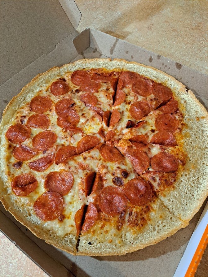 Large round Pepperoni pizza with a stuffed crust brushed with our signature Crazy Crust, a buttery-flavored garlic spread sprinkled with Parmesan.